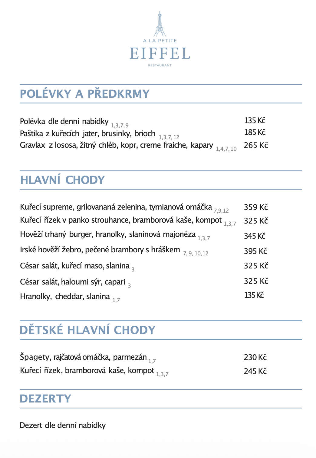 Na jaře roku 2021 jsme otevřeli v bývalé budově Českých radiokomunikací restauraci Ateliér Petřín. Ta se nachází přímo u Petřínské rozhledny, která byla postavena v rámci Zemské jubilejní výstavy v roce 1891 jako volná kopie pařížské Eiffelovy věže v poměru 1:5. Velkou atrakcí je možnost svézt se lanovkou na Petřín a užít si výhledu na strhující panorama Prahy včetně blízkého Pražského hradu. Vzhledem k historické provázanosti se světoznámou Eiffelovou věží (TOUR EIFFEL) a na počest Olympiády v Paříži 2024 byla přejmenována na A LA PETITE EIFFEL (U malé Eiffelovky).